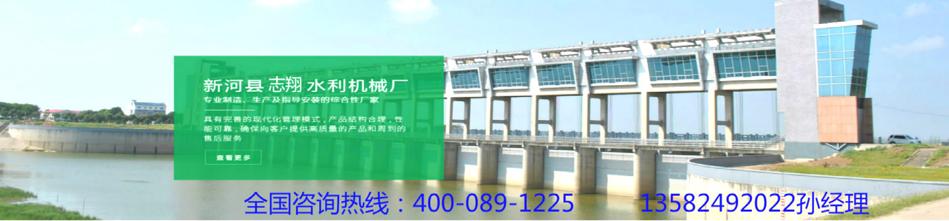 新河縣志翔水利機械廠常年生產銷售鑄鐵閘門、啟閉機、閘門、20多種規格型號閘門啟閉機、固定卷揚啟閉機、移動卷揚啟閉機、電裝啟閉機、鑄鐵鑲銅閘門、鋼制閘門、翻板閘門、不銹鋼閘門、景觀壩、鋼壩、液壓翻板閘門、側翻拍門、鑄鐵拍門、鋼制拍門等各種材質拍門、除污設備、螺旋輸送機、成套環保設備,橡膠止水的專業制造、生產及指導安裝的綜合性廠家,具有完善的現代化管理模式,產品結構合理,性能可靠,確保向客戶提供高質量的產品和周到的售后服務,是制造、銷售、安裝一體化的規模型水利工程機械生產企業。   我廠主導產品:   1、螺桿啟閉機系列:QL手搖式螺桿啟閉機(2T—50T)、QL手電式螺桿啟閉機(2T—50T)、QL側搖式螺桿啟閉機(1T—5T)···
